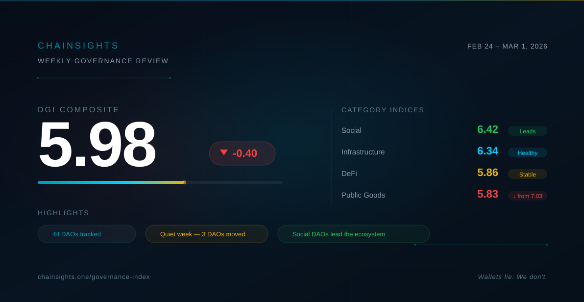 DGI Weekly: Quiet Week, Only 3 of 44 DAOs Move — Social Takes the Lead